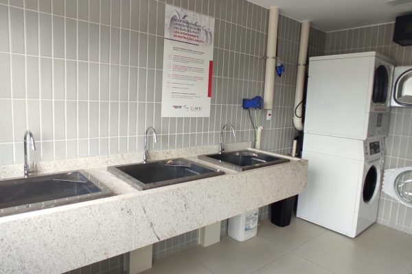 –Serviço de lavanderia terceirizado com lavadora e secadora, com acesso para pagamento por meio de QR code
