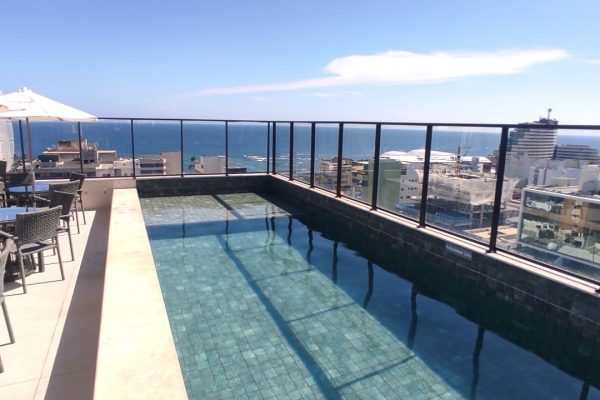 –Cobertura rooftop com piscina e vista para o mar, com cadeiras, sombreiros, chuveiros e banheiros. Há uma churrasqueira, que pode ser reservada mediante uma taxa, com um mínimo de 72hs de aviso