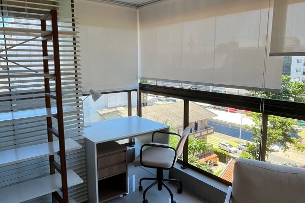 –Persianas na varanda/sala/escritório, propiciando mais privacidade